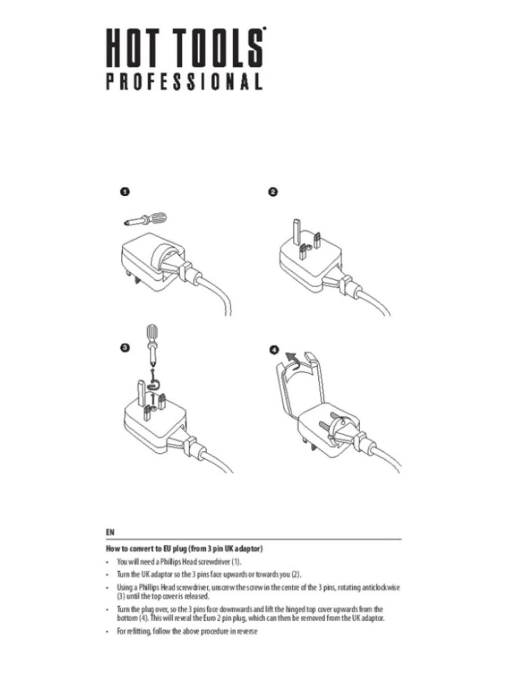 Nástroj je dodáván s UK i EU zástrčkou. Pro použití v EU sundejte UK adaptér.