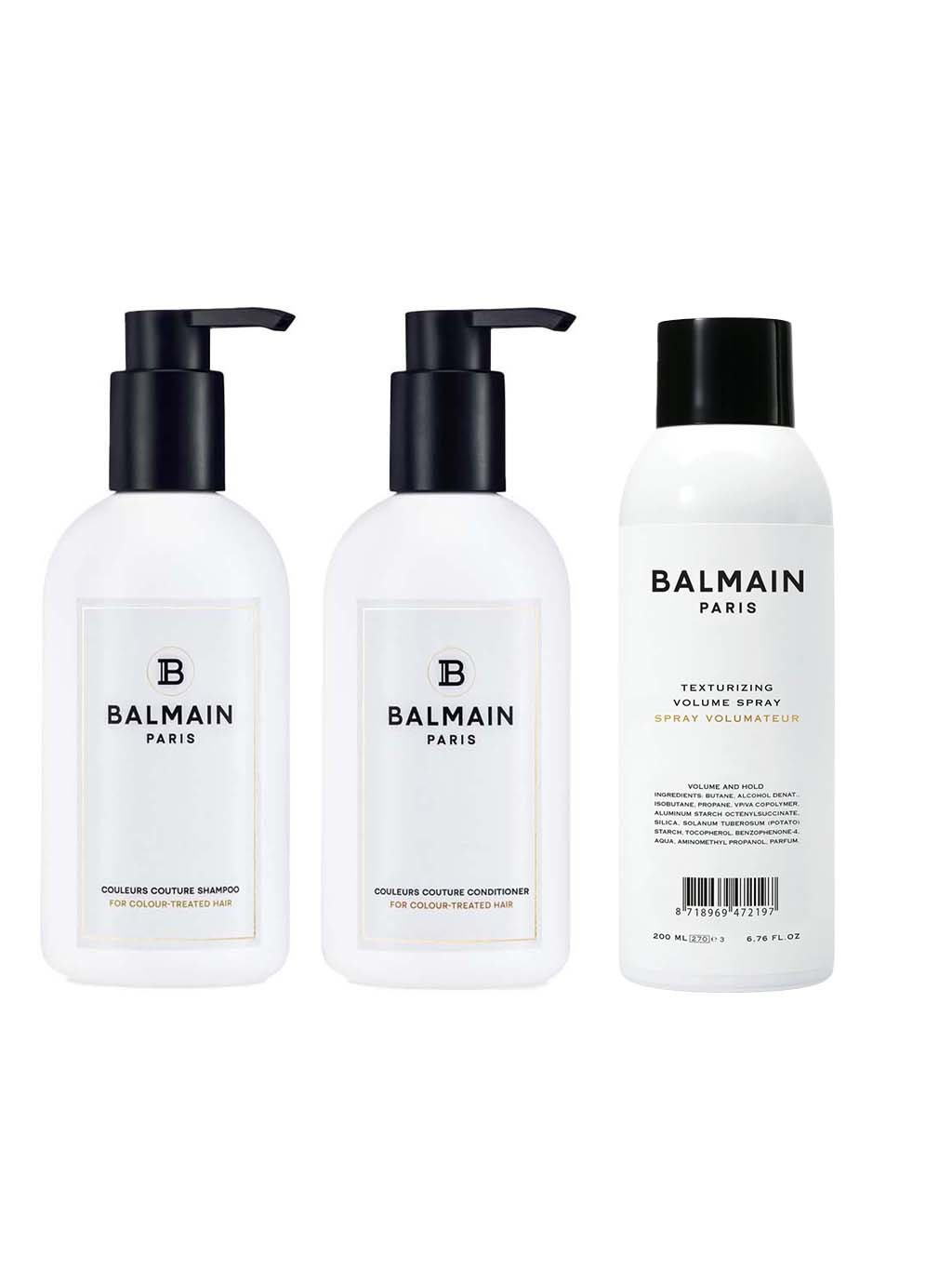 Kompletní péče o barvené a poškozené vlasy zahrnující šampon, kondicionér a texturizační sprej. Set obnovuje přirozenou rovnováhu vlasů, dodává hebkost, lesk a posiluje vlasy do hloubky díky jedinečné kombinaci arganového elixíru, hedvábných a kašmírových proteinů a oleje z quinoy.