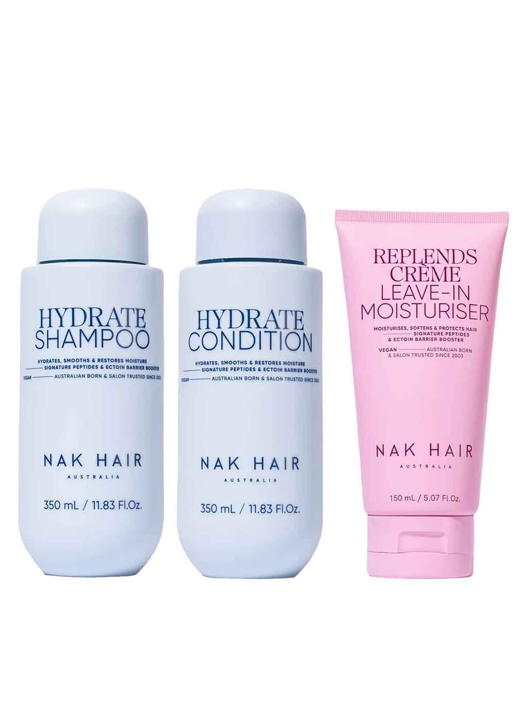 Dopřejte suchým a žíznivým vlasům intenzivní hydrataci s touto výživnou trojicí. Hydratační šampon a kondicionér vlasy uhlazují a navrací jim vitalitu, zatímco bezoplachový krém pro každodenní použití s extraktem ze semen baobabu a listů agáve vlasy zjemňuje a uzamyká v nich dlouhotrvající hydrataci. Vlasy jsou hebké, zdravé a plné života.
