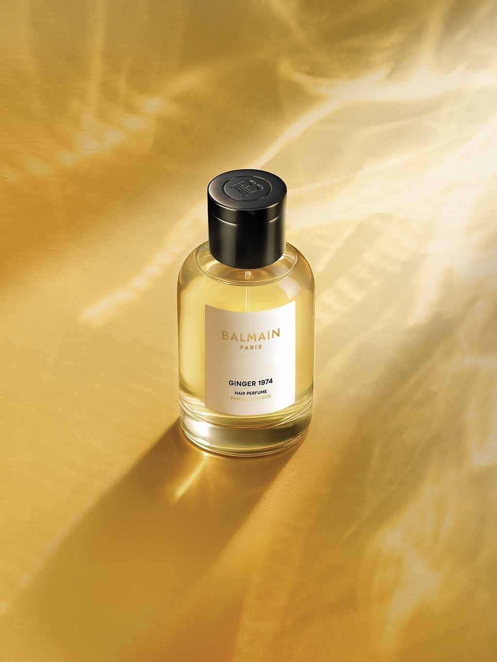 Inspirací pro vznik Ginger 1974 byla nezaměnitelná silueta Balmain, rozpoznatelná na první pohled. Výsledkem je elegantní, opulentní, strukturovaný a svůdný vlasový parfém, který svého nositele zahalí do charakteristické „voňavé siluety“. Kompozice spojuje šťavnatý bergamot, řízný zázvor, jemný kožený semiš, jedlový balzám evokující lepkavou borovicovou mízu, mechové tóny suchého dubu a hebké bílé pižmo. Díky své intenzitě a výraznosti je nepřehlédnutelný a okamžitě přitahuje pozornost.