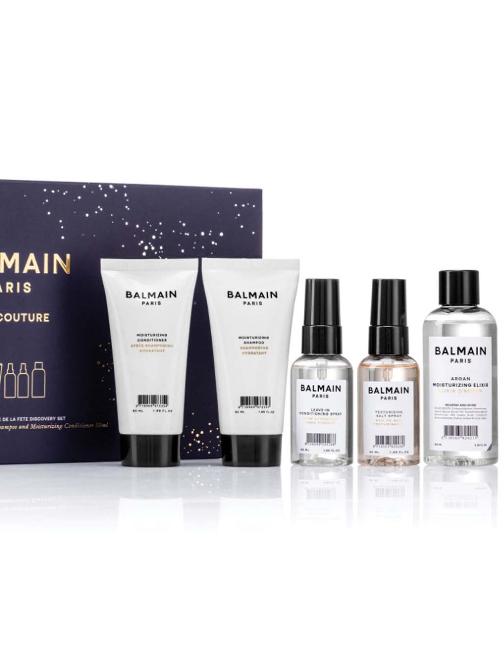 Limitovaný set produktů pro hydrataci, lesk a ochranu vlasů v každodenní rutině. Zanechává vlasy hebké, vyživené a viditelně zdravější. Ideální pro vyzkoušení péče Balmain Hair nebo jako luxusní dárek.