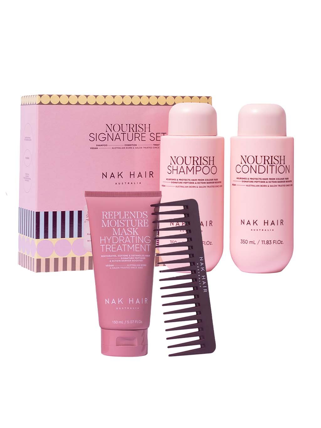 Kompletní sada pro hloubkovou hydrataci a obnovu suchých nebo poškozených vlasů. Krémový šampon jemně čistí, kondicionér vyživuje a maska dodává vlasům hebkost, pružnost a lesk.
